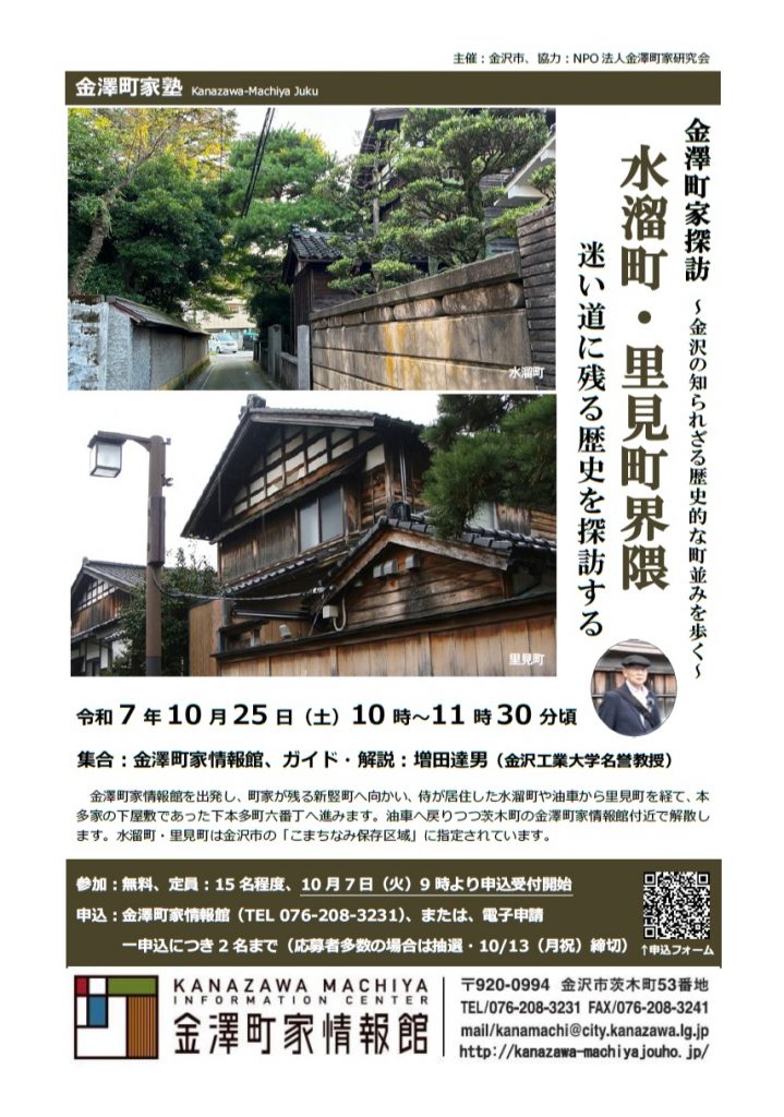 申 込:10/7(火)9:00より受付開始/金沢市電子申請または金澤町家情報館へ